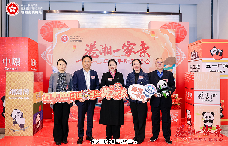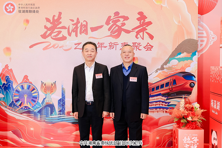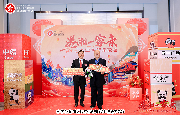 2025年2月25日,由香港特別行政區(qū)政府駐武漢經(jīng)濟(jì)貿(mào)易辦事處駐湖南聯(lián)絡(luò)處與湖南省人民政府港澳事務(wù)辦公室舉辦的“港湘一家親2025新春聚會(huì)”在湖南長(zhǎng)沙市成功舉辦。香港特別行政區(qū)政府駐武漢經(jīng)濟(jì)貿(mào)易辦事處主任蔡敏君;中共湖南省委統(tǒng)戰(zhàn)部副部長(zhǎng)、省政府僑辦主任劉衛(wèi)兵,湖南省人民政府港澳事務(wù)辦公室副主任郭向麗,中共湖南省委教育工委委員、省教育廳黨組成員余偉良,湖南省科技廳黨組成員、副廳長(zhǎng)佟來(lái),湖南省公安廳黨委委員、副廳長(zhǎng)余良勇,湖南省出入境邊防檢查總站副總站長(zhǎng)丁莉,湖南省商務(wù)廳黨組成員、副廳長(zhǎng)劉素月,湖南省文旅廳黨組成員、副廳長(zhǎng)龔鐵軍,中共湖南省委統(tǒng)戰(zhàn)部港澳臺(tái)處處長(zhǎng)梁良,湖南省人民政府港澳事務(wù)辦公室港澳處處長(zhǎng)黎沖;香港特別行政區(qū)政府駐湖南聯(lián)絡(luò)處主任李錦雄;長(zhǎng)沙市政協(xié)副主席劉金文,中共長(zhǎng)沙市委統(tǒng)戰(zhàn)部副部長(zhǎng)、市僑辦主任楊光華,中共長(zhǎng)沙市委統(tǒng)戰(zhàn)部港澳處處長(zhǎng)趙敏等領(lǐng)導(dǎo)出席。香港湖南聯(lián)誼總會(huì)常務(wù)副會(huì)長(zhǎng)、香港長(zhǎng)沙聯(lián)誼會(huì)會(huì)長(zhǎng)、綠之韻集團(tuán)董事長(zhǎng)胡國(guó)安與在湘港人和港資企業(yè)代表等近200名來(lái)賓共聚一堂同賀新春。