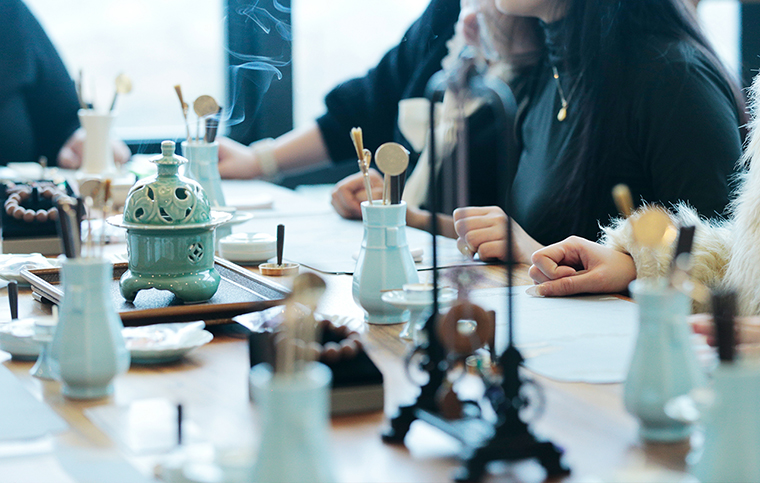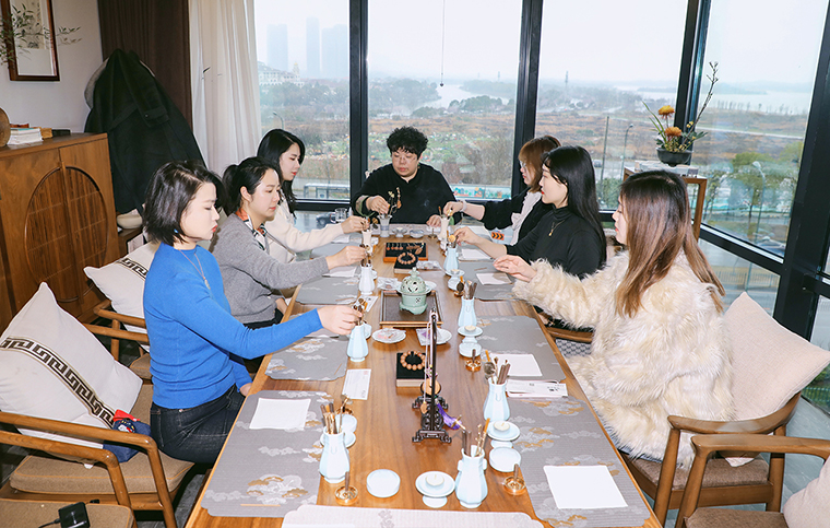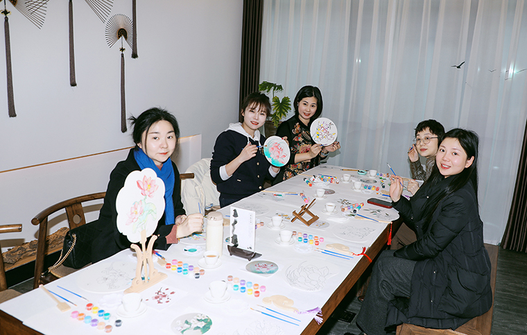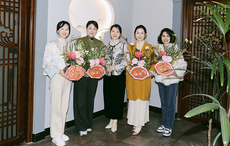 在五行珠串、宋代點(diǎn)茶、中式插花、古法篆香以及手工畫扇等環(huán)節(jié)中,綠之韻的女神們沉浸于傳統(tǒng)文化的博大精深之中,親手串起寓意深刻的五行珠串,感受每一顆珠子所承載的自然元素與文化奧義;學(xué)習(xí)宋代點(diǎn)茶的技藝,大家手持茶筅,輕輕攪動(dòng),感受宋代點(diǎn)茶的獨(dú)特魅力,在茶藝師的精心教授中,創(chuàng)作出精美的“茶百戲”;中式插花不僅是一種裝飾,更是一種文化的傳承和情感的表達(dá)。在花藝師的啟發(fā)下,女神們用心挑選花材,通過巧妙搭配,創(chuàng)作出簡(jiǎn)約而富有意境的花束;在古法篆香區(qū),香道師引領(lǐng)大家親手制作篆香,品香冥想,感受香道的歷史底蘊(yùn);畫扇是宋代較為盛行的素色扇面繪畫,一面作畫,一面寫字,集自然雅趣于一圓方寸之中,畫扇師與綠之韻的女神們手持畫筆,恣意在扇面上勾勒,每一筆都傾注著她們的情感與才情。體驗(yàn)傳統(tǒng)手工活動(dòng)不僅讓綠之韻的女神們感受到了傳統(tǒng)文化的獨(dú)特魅力,更在動(dòng)手創(chuàng)作的過程中,感受到了內(nèi)心的寧靜與滿足,仿佛與古人進(jìn)行了一場(chǎng)跨越時(shí)空的心靈對(duì)話,也讓大家更加深刻地理解了中華優(yōu)秀傳統(tǒng)文化的深厚底蘊(yùn)和獨(dú)特價(jià)值。