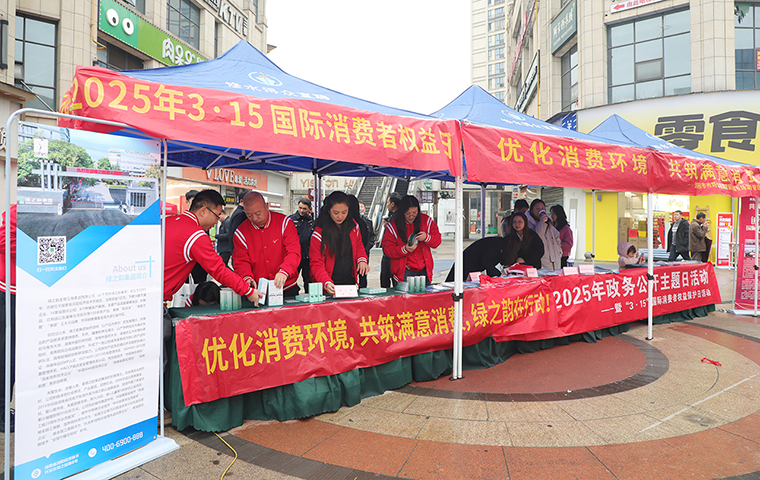 2025年3月15日,以“共筑滿意消費(fèi)”為主題的瀏陽市3·15國際消費(fèi)者權(quán)益日活動在瀏陽河廣場舉行。瀏陽市人民政府黨組成員旦增次仁,瀏陽市市場監(jiān)管局黨組書記、局長、瀏陽市消委會會長王海,瀏陽市市場監(jiān)管局黨組成員、副局長楊輝等領(lǐng)導(dǎo)出席活動。綠之韻集團(tuán)總裁勞嘉帶領(lǐng)部分員工和經(jīng)銷商代表參加活動,與市民共話誠信經(jīng)營、共繪消費(fèi)新圖景。
