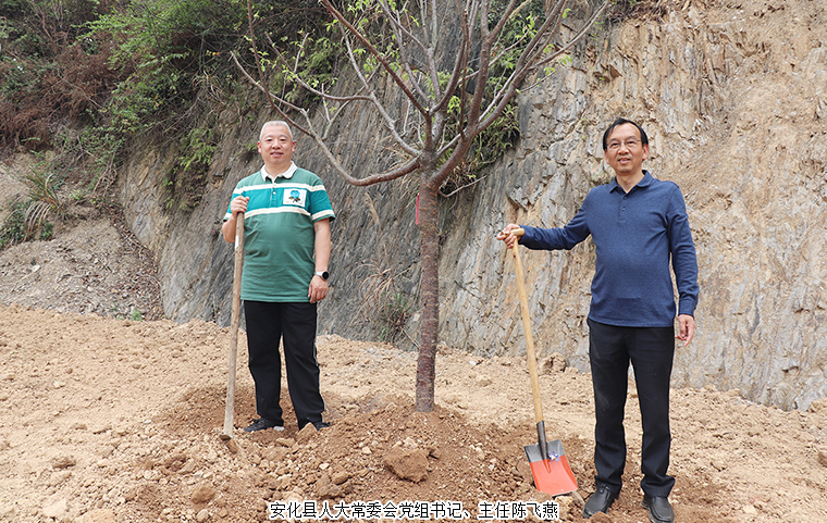 益陽(yáng)市人大常委會(huì)黨組書(shū)記、主任劉澤友,益陽(yáng)市人大常委會(huì)黨組成員、副主任楊麗萍、黃育文、崔建平,秘書(shū)長(zhǎng)祁輝;中共安化縣委副書(shū)記、縣長(zhǎng)潘文劍,安化縣人大常委會(huì)黨組書(shū)記、主任陳飛燕,安化縣人大常委會(huì)副主任李艷云、胡能新等領(lǐng)導(dǎo)參加。長(zhǎng)沙市人大代表、綠之韻集團(tuán)董事長(zhǎng)胡國(guó)安,安化縣人大代表、綠之韻集團(tuán)常務(wù)副總裁胡均安與益陽(yáng)市、安化縣人大常委會(huì)機(jī)關(guān)干部、人大代表、群眾代表等100余人共同揮鍬添綠,以實(shí)際行動(dòng)踐行“綠水青山就是金山銀山”理念,掀起植綠護(hù)綠、共建美麗鄉(xiāng)村的熱潮。
