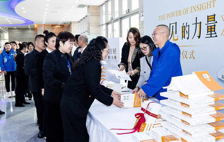 “洞見開啟新程,力量鑄就非凡?!焙鷩捕麻L向來到現(xiàn)場(chǎng)的各位綠之韻數(shù)字化家人、讀者粉絲分享了創(chuàng)作本書的心路歷程。他表示,創(chuàng)作《洞見的力量》,離不開大家的支持。這本書凝聚了自己 20 多年生活、工作、學(xué)習(xí)與成長的經(jīng)驗(yàn)。一直以來,綠之韻集團(tuán)都極為重視學(xué)習(xí)。無論是員工還是合作伙伴,都被要求不斷學(xué)習(xí),秉持終身學(xué)習(xí)的理念,通過多種方式充實(shí)自我。書內(nèi)著重剖析了綠之韻集團(tuán)的企業(yè)文化、產(chǎn)品文化等內(nèi)容。多年來,我們通過多種形式,在全國積極傳播這些文化,期望其能落地生根。在數(shù)字化時(shí)代,更希望伙伴們借助數(shù)字化手段,進(jìn)一步提升企業(yè)文化與產(chǎn)品文化的影響力。讓綠之韻的文化精髓觸及更廣泛的人群,在新時(shí)代煥發(fā)出更為蓬勃的生機(jī)與活力。“企業(yè)小的時(shí)候是自己的,但做大以后就是國家的、是社會(huì)的?!彼J(rèn)為,真正的洞見,既是照亮他人的火炬,更是點(diǎn)燃自我的燎原之火。我們每個(gè)人都應(yīng)有責(zé)任感,當(dāng)有能力時(shí),要積極回報(bào)社會(huì)。就像今天來到現(xiàn)場(chǎng)的事業(yè)伙伴們,大家都具備奉獻(xiàn)、擔(dān)當(dāng)?shù)哪芰浚M蠹页掷m(xù)發(fā)揮這些能量,去幫助社會(huì)上眾多需要幫助的人,為社會(huì)貢獻(xiàn)一份力量。愿這本承載著深刻洞見與真摯期許的書籍,成為連接彼此能量的橋梁,源源不斷地為大家輸送砥礪奮進(jìn)的力量。