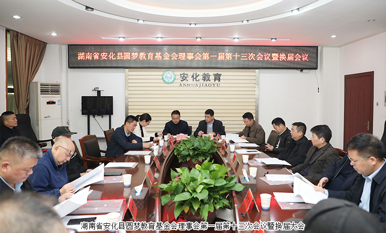 2025年4月2日,湖南省安化縣圓夢教育基金會理事會第一屆第十三次會議暨換屆大會在安化縣教育局圓滿召開。益陽市教育基金會副理事長何湘旺、市教育基金會副理事長兼秘書長劉文凱;安化縣人民政府黨組成員、副縣長莫超,安化縣政協(xié)副主席、縣工商聯(lián)主席劉暢術(shù),安化縣教育局黨組書記、局長陳羽成,安化縣民政局黨組成員、副局長劉紅兵,安化縣教育局黨組成員、副局長劉周明等領(lǐng)導出席會議。安化縣人大代表、綠之韻集團常務副總裁胡均安受邀出席會議,并當選為基金會第二屆理事會理事。