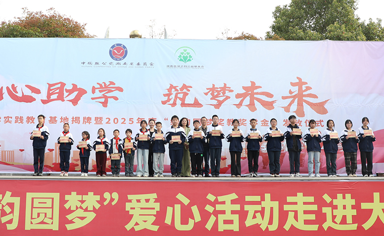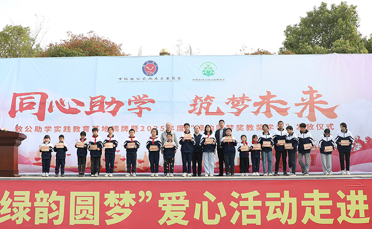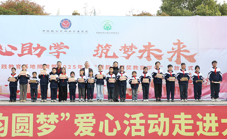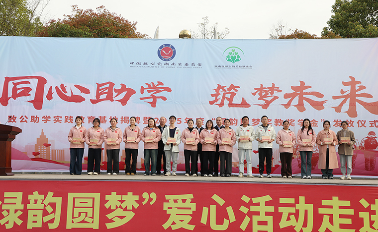 為營造濃厚的關(guān)心人才、尊重人才、支持人才以及愛學、勤學、好學、比學的濃厚氛圍,2023年,致公黨湖南省委會、湖南省綠之韻公益基金會“綠韻圓夢行動”捐贈50萬元愛心資金用于在安化大橋?qū)W校設(shè)立“獎教獎學金”,支持鄉(xiāng)村振興文化建設(shè)和教育事業(yè)發(fā)展。4月2日,致公助學實踐教育基地揭牌暨2025年度“綠韻圓夢獎教獎學金”發(fā)放儀式再次走進安化縣冷市鎮(zhèn)大橋?qū)W校,為鄉(xiāng)村教育注入了新的活力。