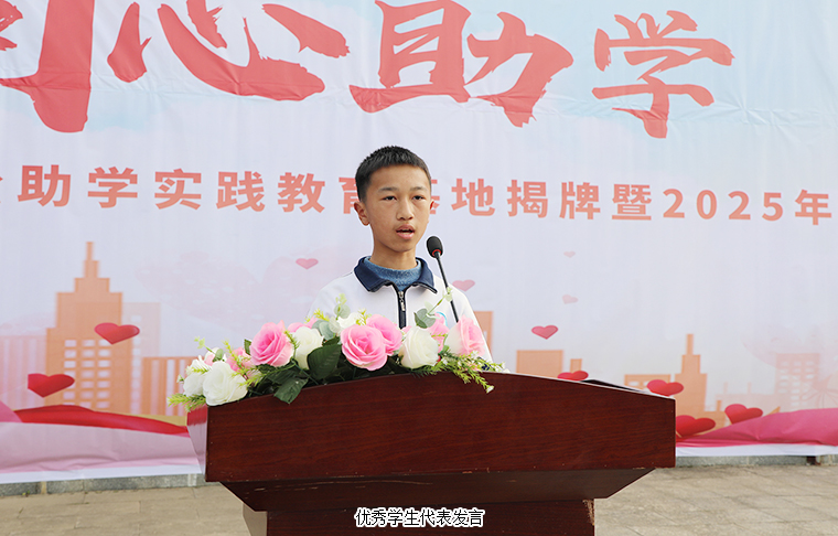 中共安化縣委副書記、統(tǒng)戰(zhàn)部部長代虹宇致歡迎辭。他首先對一直大力支持教育事業(yè)的綠之韻集團愛心團隊給予高度贊許。同時表示,2021年,致公黨湖南省委員會與我縣簽訂《助力鄉(xiāng)村振興戰(zhàn)略“致安合作”框架協(xié)議》,通過產(chǎn)業(yè)幫扶、教育助學、醫(yī)療義診等務(wù)實舉措,累計投入幫扶資金860萬元,實施項目 23個,為安化鄉(xiāng)村振興注入強勁動能。胡國安董事長設(shè)立“綠韻圓夢”獎教獎學金,已經(jīng)連續(xù)三年每年向?qū)W校捐贈人民幣10萬元整,累計惠及師生420人次,彰顯了新時代企業(yè)家的教育情懷和責任擔當。安化大橋?qū)W校作為冷市鎮(zhèn)教育的窗口,近年來在各方支持下,辦學條件顯著改善,教學質(zhì)量穩(wěn)步提升。今天實踐教育基地揭牌,既是總結(jié)更是啟航。期盼學校深化合作,在課程共建、師資培育等方面創(chuàng)新突破,打造鄉(xiāng)村教育振興示范樣本。希望同學們立鴻鵠志、做追夢人,將感恩之心轉(zhuǎn)化為“強國有我”的奮斗力量,讓青春在傳遞愛心中綻放光彩。讓我們以此次活動為新起點,凝聚各方力量,厚植教育情懷,持續(xù)推動城鄉(xiāng)教育優(yōu)質(zhì)均衡發(fā)展,為鄉(xiāng)村振興培育更多生力軍。