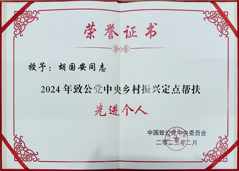 致力為公,是每一位致公黨員心底始終堅守的承諾。多年來,綠之韻集團在致公黨員、綠之韻集團董事長胡國安的帶領(lǐng)下,始終秉持“造福人類、回饋社會”的企業(yè)理念,踴躍參與多項社會公益事業(yè),積極響應(yīng)省委統(tǒng)戰(zhàn)部、致公黨省委、市委的號召,奮力投身“一家一”助學就業(yè)·同心溫暖工程、助力扶貧攻堅、鄉(xiāng)村振興工程?;顒悠陂g,湖南省人大常委會副主任、致公黨省委會主委胡旭晟為胡國安董事長頒發(fā)“2024年致公黨中央鄉(xiāng)村振興定點幫扶先進個人”榮譽證書。胡國安董事長表示,作為一名致公黨員,他將時刻銘記自身的責任與擔當,在致公黨湖南省委會、致公黨長沙市委會的正確領(lǐng)導(dǎo)下,全力以赴,積極作為。未來,他會把這份榮譽化作動力,深入學習,提升自身能力;發(fā)揮企業(yè)優(yōu)勢,帶動更多資源向鄉(xiāng)村傾斜;帶動更多致公黨員和企業(yè)家參與,探索更多創(chuàng)新幫扶模式,為鄉(xiāng)村振興與社會發(fā)展持續(xù)貢獻力量。