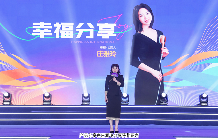 在逐夢(mèng)前行的道路上,他們是勇敢的開(kāi)拓者,以星星之火,點(diǎn)燃分享的熱情。每一次的講述,都傳遞著產(chǎn)品的魅力;每一次的推薦,都凝聚著信任的力量。他們憑借著對(duì)產(chǎn)品的熱愛(ài)與深入了解,用真誠(chéng)的分享打動(dòng)著身邊的每一個(gè)人,為品牌的傳播默默耕耘。大會(huì)為“2025年度產(chǎn)品分享官3冠、4 冠、5 冠”獲獎(jiǎng)?wù)哳C發(fā)榮譽(yù),幸福代言人莊雅玲、呂佳潞分享獲獎(jiǎng)感言。