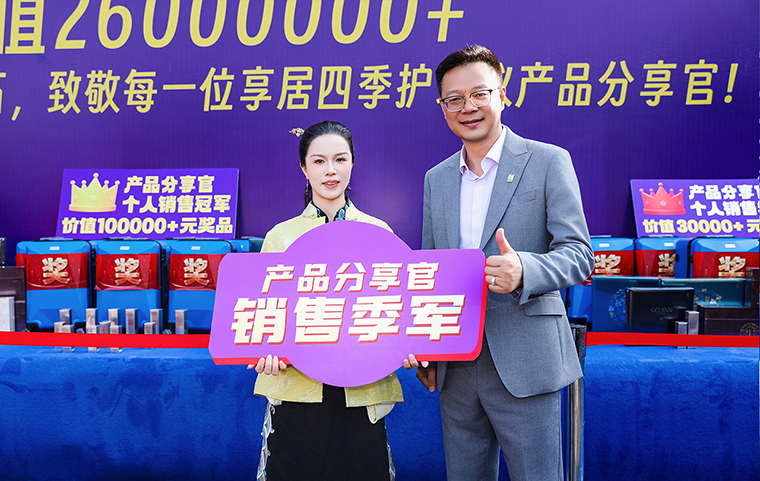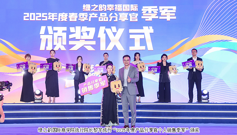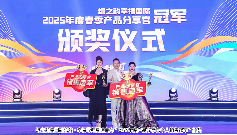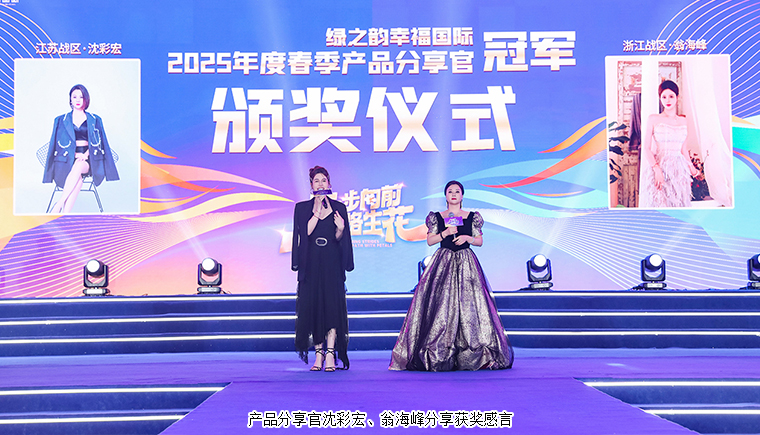 在風(fēng)云變幻的市場(chǎng)上,他們以智慧和汗水書寫銷售傳奇。每一次成功的分享,都是努力的結(jié)晶;每一個(gè)客戶的認(rèn)可,都是奮斗的勛章。他們用實(shí)力證明,只要心懷夢(mèng)想,全力以赴,就能在舞臺(tái)上綻放最耀眼的光芒。綠之韻集團(tuán)副總裁·幸福導(dǎo)師夏運(yùn)良為“2025年度產(chǎn)品分享官個(gè)人銷售冠軍”的獲得者江蘇戰(zhàn)區(qū)沈彩宏、浙江戰(zhàn)區(qū)翁海峰頒獎(jiǎng)。