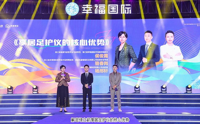 會(huì)上,還舉行了“享居足護(hù)儀”新品上市發(fā)布會(huì)。綠之韻健康專家委員會(huì)專家委員、綠之韻幸福國(guó)際市場(chǎng)商學(xué)院院長(zhǎng)侯俊霞,綠之韻幸福國(guó)際商學(xué)院市場(chǎng)特聘教授、綠韻悅喜智能科技有限公司首席研發(fā)專家駱春崗,綠韻悅喜智能科技有限公司總經(jīng)理?xiàng)钚宪幑餐?jiàn)證由綠之韻幸福國(guó)際自主研發(fā)的、具有核心競(jìng)爭(zhēng)力、高含金量的“拳頭”新品——綠之韻享居足護(hù)儀的震撼發(fā)布,掀起了會(huì)場(chǎng)的高潮。