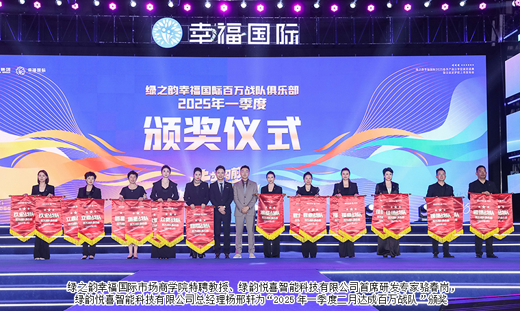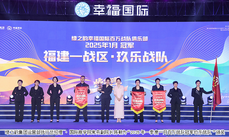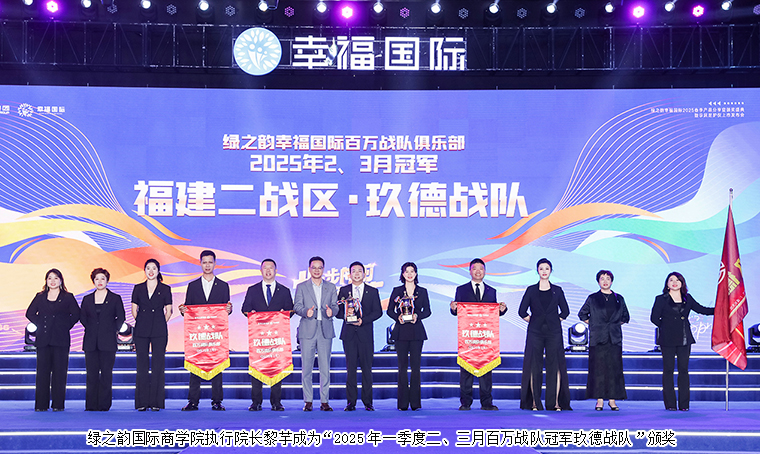 隨后,大會(huì)為2025年第一季度達(dá)成百萬(wàn)業(yè)績(jī)的戰(zhàn)隊(duì)舉行了盛大的頒獎(jiǎng)儀式。綠之韻集團(tuán)市場(chǎng)運(yùn)營(yíng)中心市場(chǎng)業(yè)務(wù)總監(jiān)喻鳴鸞、綠之韻集團(tuán)市場(chǎng)運(yùn)營(yíng)中心區(qū)域業(yè)務(wù)總監(jiān)譚紅為“2025年一季度一月達(dá)成百萬(wàn)戰(zhàn)隊(duì)”頒獎(jiǎng)。綠之韻幸福國(guó)際市場(chǎng)商學(xué)院特聘教授、綠韻悅喜智能科技有限公司首席研發(fā)專家駱春崗,綠韻悅喜智能科技有限公司總經(jīng)理?xiàng)钚宪帪椤?025年一季度二月達(dá)成百萬(wàn)戰(zhàn)隊(duì)”頒獎(jiǎng)。綠之韻集團(tuán)品宣部執(zhí)行總經(jīng)理龍雅鳳,綠之韻健康專家委員會(huì)專家委員、綠之韻幸福國(guó)際市場(chǎng)商學(xué)院院長(zhǎng)侯俊霞為“2025年一季度三月達(dá)成百萬(wàn)戰(zhàn)隊(duì)”頒獎(jiǎng)。綠之韻集團(tuán)運(yùn)營(yíng)部執(zhí)行總經(jīng)理·國(guó)際商學(xué)院常務(wù)副院長(zhǎng)陳敏為“2025年一季度一月百萬(wàn)戰(zhàn)隊(duì)冠軍玖樂(lè)戰(zhàn)隊(duì)”頒獎(jiǎng)。綠之韻國(guó)際商學(xué)院執(zhí)行院長(zhǎng)黎芋成為“2025年一季度二、三月百萬(wàn)戰(zhàn)隊(duì)冠軍玖德戰(zhàn)隊(duì)”頒獎(jiǎng)。隨后,綠之韻國(guó)際商學(xué)院執(zhí)行院長(zhǎng)黎芋成對(duì)綠之韻幸福國(guó)際的核心競(jìng)爭(zhēng)力進(jìn)行了全面解析。