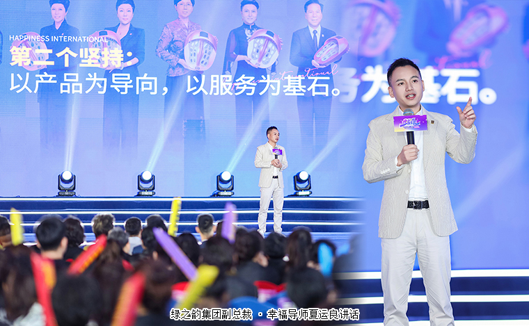 活動(dòng)最后,在全場(chǎng)熱烈的掌聲中,綠之韻集團(tuán)副總裁·幸福導(dǎo)師夏運(yùn)良講話。他向所有的產(chǎn)品分享官與戰(zhàn)隊(duì)長(zhǎng)致以崇高的敬意致敬。他表示,2025年,是綠之韻幸福國(guó)際第二個(gè)五年的開(kāi)局之年,在六月份,我們還將迎來(lái)自己的六周年慶典。隨后,他向所有的幸福代言人分享了三個(gè)堅(jiān)持:第一個(gè)堅(jiān)持:堅(jiān)持自主研發(fā)和生產(chǎn)。從2020到2025,我們用五年的時(shí)間擁有了自己的智能科創(chuàng)中心。我們的使命是“科技,讓中醫(yī)養(yǎng)生進(jìn)萬(wàn)家”,而實(shí)現(xiàn)這一目標(biāo)的核心,就是堅(jiān)持自主研發(fā)與生產(chǎn)。唯有掌握核心科技,積累研發(fā)成果,才能讓中醫(yī)的“智能化、簡(jiǎn)單化、家庭化、全球化”從愿景變?yōu)楝F(xiàn)實(shí)。第二個(gè)堅(jiān)持:以產(chǎn)品為導(dǎo)向,以服務(wù)為基石。對(duì)于產(chǎn)品服務(wù)人員他要求把產(chǎn)品用出效果、把服務(wù)做到極致;對(duì)于營(yíng)銷人員他要求讓陪伴產(chǎn)生感覺(jué)、用同頻創(chuàng)造價(jià)值;對(duì)于悅喜科創(chuàng)中心研發(fā)生產(chǎn)團(tuán)隊(duì)他要求以匠心守初心,產(chǎn)品品質(zhì)永遠(yuǎn)是企業(yè)生存與發(fā)展的生命線。第三個(gè)堅(jiān)持:誠(chéng)信是紅線,利他是初心。每年的5月是愛(ài)心公益月,但是社會(huì)責(zé)任的承擔(dān)與體現(xiàn),不僅僅是用公益行動(dòng)來(lái)證明,還有三個(gè)方面要一起去踐行:首先是做人要正心、正念、正能量;其次是做事要專一、專注、專業(yè);最后是做市場(chǎng)要利他、團(tuán)結(jié)、共進(jìn)。2025年過(guò)去了四個(gè)月,幸福國(guó)際正穩(wěn)扎穩(wěn)打,一步一個(gè)腳印向前,每一步都有方向,每一步都有希望,每一步都在向著正確的方向前進(jìn)。讓我們繼續(xù)以產(chǎn)品為舟,以服務(wù)為槳,以創(chuàng)新為帆,步步向前,一路生花!