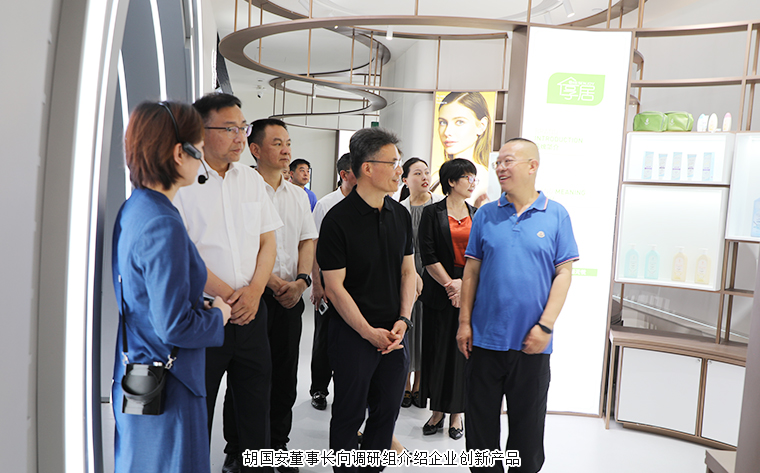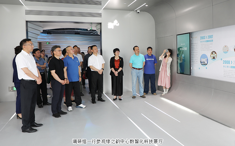 隨后,調研組一行來到位于綠之韻中心17層的數(shù)智化科技展廳。展廳設計深度融入企業(yè) “水之道” 理念,以水的旅程為敘事主線,將企業(yè)初心與情懷貫穿始終,同時融合 “東哲西技” 概念,展現(xiàn)獨特的文化底蘊。展廳運用數(shù)字技術打造互動體驗,構建智慧型新時代中醫(yī)藥文化展示空間,通過立體空間多維度呈現(xiàn)集團企業(yè)文化、發(fā)展歷程、黨建公益、產(chǎn)品理念、科研實力及未來愿景等內容。在參觀過程中,胡國安董事長向調研組詳細介紹了企業(yè)發(fā)展脈絡,展廳內豐富的最新科技成果與創(chuàng)新產(chǎn)品,更是直觀展現(xiàn)了綠之韻在大健康領域的積極探索與階段性成果。