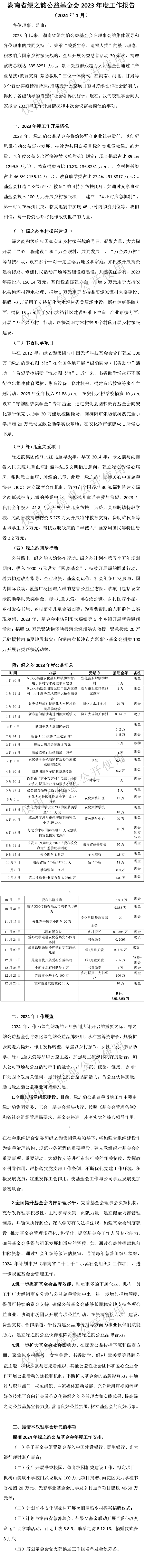 湖南省綠之韻公益基金會2023年度工作報告