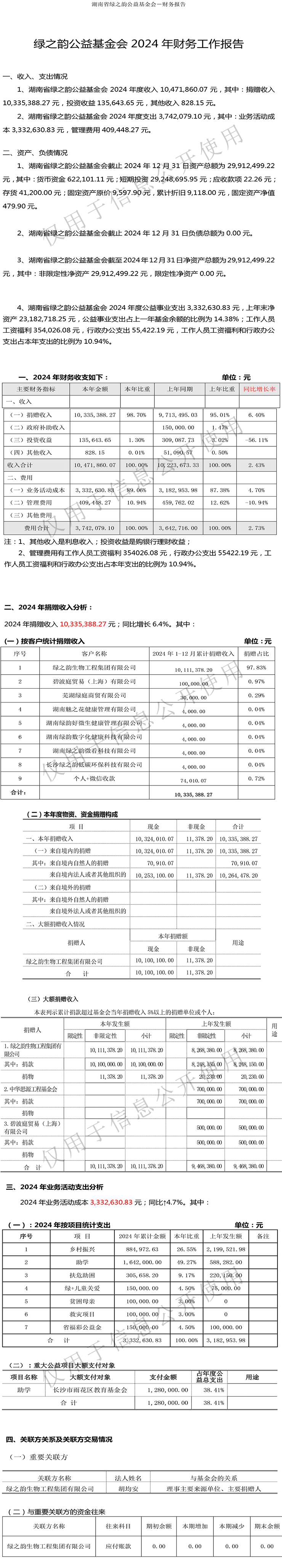湖南省綠之韻公益基金會2024年財務(wù)報告