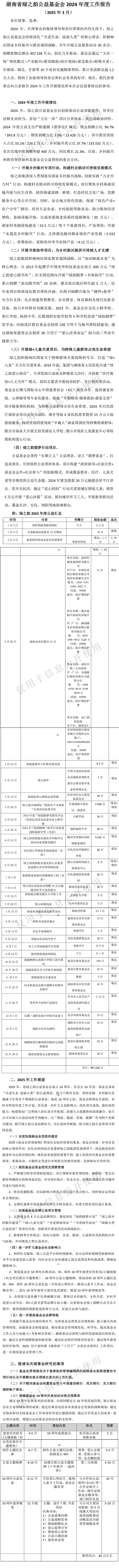 湖南省綠之韻公益基金會2024年度工作報告