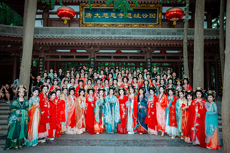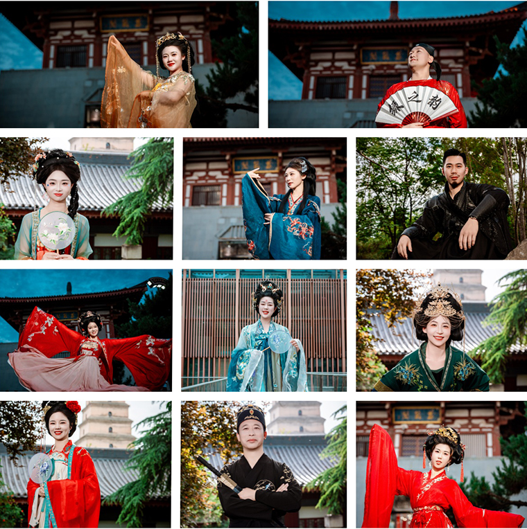 華袍錦裳袂若仙,一夢(mèng)千年越長(zhǎng)安。綠之韻家人們身著曳地襕袍,輕裹織金羅裙,步搖輕顫中更顯仕女端麗,信步踏入「長(zhǎng)安十二時(shí)辰」街區(qū) —— 雕梁畫(huà)棟間浮動(dòng)著唐宮香篆,胡商貨攤與彩樓旗幡交相輝映,恍若化身為貞觀(guān)年間的貴胄子弟,在酒肆茶坊間拾掇千年光陰。轉(zhuǎn)過(guò)坊墻,大慈恩寺遺址公園的禪意撲面而來(lái)。雁塔影落碧池,銀杏葉染秋光,家人們于古槐下合十靜立,攝影師鏡頭里收盡襦裙廣袖的典雅氣韻,歷史厚重感與文化自信在快門(mén)聲中凝成永恒注腳。暮色浸透時(shí),大唐不夜城的鎏光燈河轟然點(diǎn)亮。家人們羅衣飄帶拂過(guò)現(xiàn)代潮玩店的櫥窗,在古今交融的街巷里織就流動(dòng)的盛唐長(zhǎng)卷。每一張定格的照片里,都封存著穿越千年的風(fēng)雅與此刻的歡暢。
