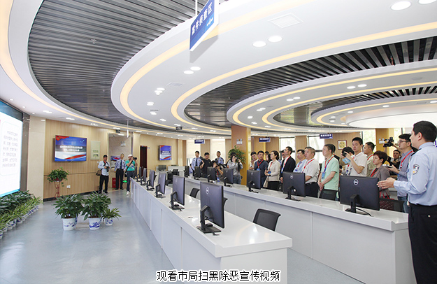 通過市局民警現(xiàn)場引導(dǎo)和解說,參觀組一行依次探訪了刑事技術(shù)大樓的視頻偵查中心、反電詐中心、掃黑除惡研判中心,實地了解了市局視頻偵查技術(shù)在偵破打擊及掃黑除惡專項斗爭中的作用,反電詐中心運(yùn)作情況,市局掃黑辦日常運(yùn)行工作情況及刑偵支隊“悅警廳”及支隊警營文化建設(shè),集中觀看了市局掃黑除惡宣傳視頻和公安機(jī)關(guān)掃黑除惡專項斗爭中繳獲的各類涉案物品等。