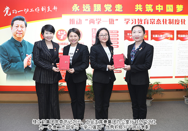 “學習強國”是學習宣傳新時代中國特色社會主義思想最權威、最全面的信息平臺。為做好“學習強國”學習平臺的推廣使用,綠之韻集團黨委將“學習強國”學習平臺建設作為一項重要的政治任務來抓,通過建立學習組織架構、組建學習管理隊伍、召開“學習強國”專項培訓會,迅速推廣運用“學習強國”學習平臺,使學習平臺成為黨團成員的精神家園。會上,綠之韻集團黨委書記劉云、工會主席兼集團辦公室行政總監(jiān)馮紅為一季度二支部學習“學習強國”優(yōu)秀積極分子陳建新、羅婷、高素丹進行表彰。