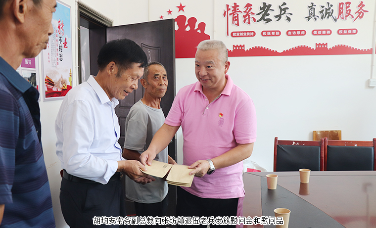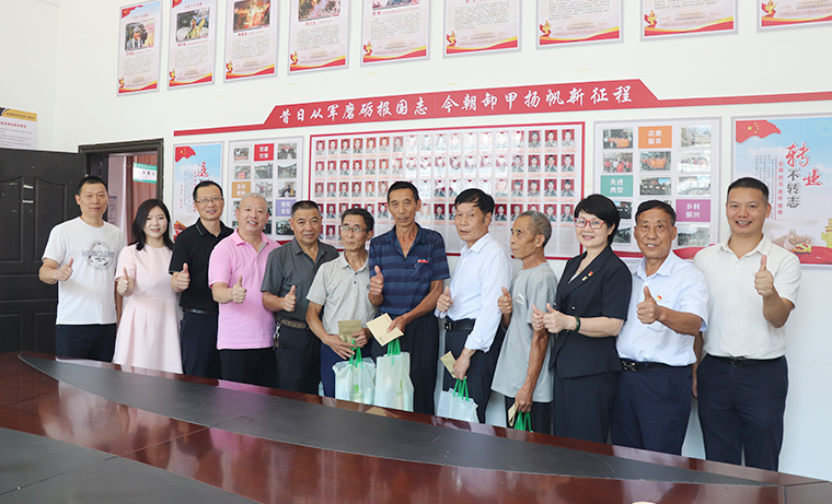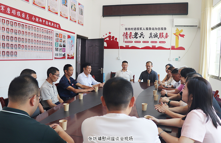 隨后,綠之韻一行前往張坊鎮(zhèn),繼續(xù)走訪慰問當(dāng)?shù)仄渌宋槔媳?,了解他們的生活狀況和需求,傳遞組織的關(guān)懷。座談會上,綠之韻集團黨委書記劉云首先代表綠之韻集團向張坊鎮(zhèn)、小河鄉(xiāng)為國家國防事業(yè)做出貢獻的軍屬、老兵們致以崇高敬意和節(jié)日祝福。劉云書記深情回顧了綠之韻集團與軍人、與瀏陽這片熱土深厚的三重“情緣”:第一重情是擁軍慰問情。一直以來,胡國安董事長堅持在每年“八一”建軍節(jié)組織開展走訪慰問退伍軍人活動。這份對軍人的深情厚誼已成為綠之韻的一個傳統(tǒng)。第二重情是尊軍用軍情。綠之韻集團一直對軍人懷有深厚的感恩之情。集團歷來優(yōu)先聘用優(yōu)秀的退伍軍人作為集團的骨干力量,為這些曾為國防做出貢獻的軍人提供發(fā)揮才干的舞臺。第三重情是幫扶共建情。從過去的精準(zhǔn)扶貧、到鄉(xiāng)村振興再到現(xiàn)在的持續(xù)幫扶,綠之韻與小河鄉(xiāng)有著長期深厚的情誼。正是這份深厚的情誼,促使集團今年“八一”特意來到小河鄉(xiāng)、張坊鎮(zhèn)進行慰問。未來,綠之韻集團黨委將繼續(xù)秉承這份“情緣”,一如既往地關(guān)心支持退伍軍人的生活與發(fā)展,積極履行企業(yè)社會責(zé)任,為瀏陽這片熱土繼續(xù)貢獻企業(yè)力量。