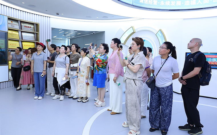 培訓(xùn)尾聲,綠之韻碧波庭精英們滿懷期待地參觀了綠之韻中心園林景觀和17層數(shù)智化科技展廳。展廳深度融入企業(yè)“水之道”核心理念,以“水的旅程”為敘事主線,貫穿企業(yè)初心與情懷,并巧妙融合“東哲西技”概念,彰顯獨(dú)特文化底蘊(yùn)。展廳運(yùn)用前沿?cái)?shù)字技術(shù)打造沉浸式互動(dòng)體驗(yàn),構(gòu)建起智慧化的新時(shí)代中醫(yī)藥文化展示空間。通過(guò)立體空間的多維度呈現(xiàn),生動(dòng)展示了集團(tuán)的企業(yè)文化、發(fā)展歷程、黨建與公益事業(yè)、產(chǎn)品理念、科研實(shí)力及未來(lái)愿景,呈現(xiàn)了綠之韻在大健康領(lǐng)域的創(chuàng)新探索與重要成果。通過(guò)高科技展示與沉浸式體驗(yàn),大家近距離感受了公司雄厚的發(fā)展實(shí)力、豐富的產(chǎn)品矩陣、深厚的品牌歷程以及面向未來(lái)的宏偉藍(lán)圖,深受鼓舞,信心倍增,為奔赴未來(lái)的征程注入無(wú)限動(dòng)能。
