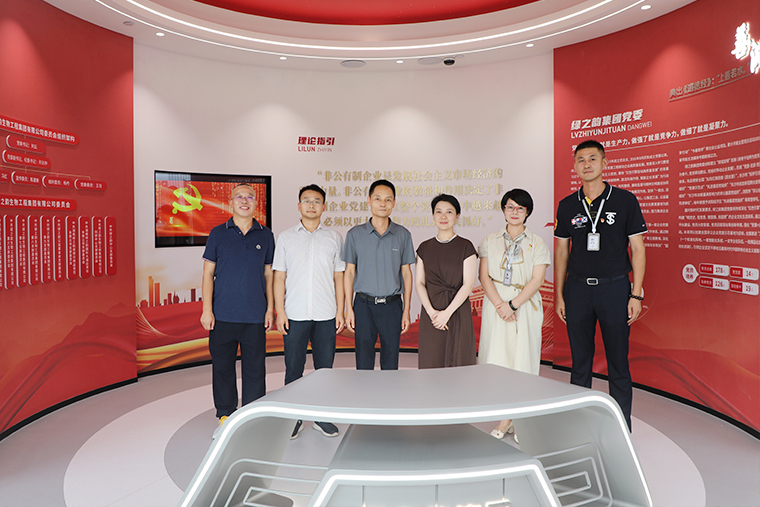 在綠之韻中心黨建教育陣地,劉云書記就企業(yè)非公黨建情況作了詳細介紹。她表示,領(lǐng)導(dǎo)關(guān)懷彰顯黨建力量,領(lǐng)導(dǎo)重視彰顯建黨精神,領(lǐng)導(dǎo)支持彰顯黨建成果。綠之韻始終將非公黨建工作置于發(fā)展戰(zhàn)略高度,自2006年成立黨支部,2013年獲批成立黨總支,2016年8月獲批成立黨委以來,堅持構(gòu)建以集團黨組織為核心,以集團工會、公益基金會為主體,注重紅色基因塑造的新時代非公黨建新生態(tài),推進“三色、三有、三亮”建設(shè),堅持“一融合、雙培養(yǎng)、三引領(lǐng)、四堅持、五補給”黨建工作法,實施“指導(dǎo)式”“責(zé)任式”“溫情式”管理,形成了具有綠之韻特色的非公黨建工作品牌。