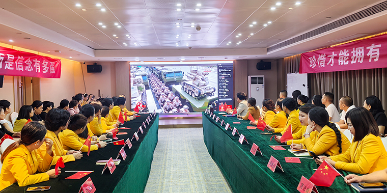 2025年9月3日上午,紀念中國人民抗日戰(zhàn)爭暨世界反法西斯戰(zhàn)爭勝利80周年閱兵式在北京天安門廣場隆重舉行。為深刻銘記中國人民抗日戰(zhàn)爭暨世界反法西斯戰(zhàn)爭勝利的偉大歷史,弘揚愛國主義精神和革命英雄主義傳統(tǒng),進一步增強企業(yè)凝聚力和黨員黨性修養(yǎng),綠之韻集團全體職工、黨員、各市場家人集中觀看了這場盛大閱兵盛典,感受祖國風(fēng)采,凝聚奮進力量。