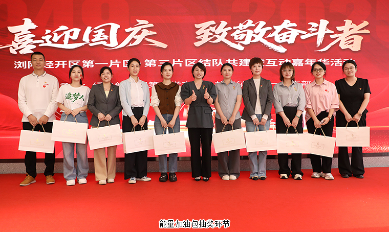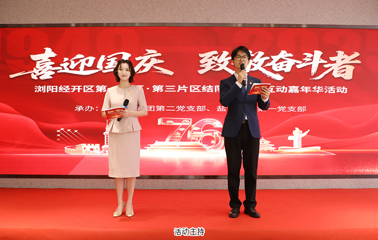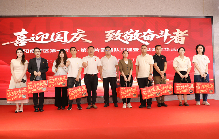紅旗漫卷山河壯,七十六載譜華章。為慶賀中華人民共和國成立76周年,近日,由瀏陽經(jīng)開區(qū)第一片區(qū)、第三片區(qū)聯(lián)合主辦,綠之韻集團第二黨支部與鹽津鋪子第一黨支部共同承辦的“喜迎國慶·致敬奮斗者”結(jié)對共建暨互動嘉年活動舉行。瀏陽經(jīng)開區(qū)企業(yè)黨委專職副書記陳飛雪,企業(yè)黨委委員、黨管科科長胡佳樂;綠之韻集團黨委書記劉云,黨委副書記許達仲,業(yè)務(wù)服務(wù)中心業(yè)務(wù)總經(jīng)理、第二黨支部書記陳建新;鹽津鋪子黨委副書記湯云峰等領(lǐng)導(dǎo)出席,片區(qū)百余名企業(yè)黨員職工代表齊聚一堂,以奮斗者之名共賀華誕。