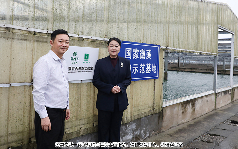 在簽約儀式前,勞嘉總裁一行應(yīng)邀參觀了賜百年院士工作站、螺旋藻繁育中心、藻種資源庫(kù)、光生物反應(yīng)器實(shí)驗(yàn)池及CNAS認(rèn)證科研中心,對(duì)賜百年在螺旋藻種質(zhì)培育、規(guī)模化養(yǎng)殖及精深加工領(lǐng)域的專業(yè)水準(zhǔn)給予高度評(píng)價(jià)。其中,院士工作站作為企業(yè)高層次科研平臺(tái),匯聚了微藻研究領(lǐng)域的頂尖專家團(tuán)隊(duì),為產(chǎn)業(yè)創(chuàng)新發(fā)展提供了強(qiáng)有力的支持。在簽約儀式環(huán)節(jié),勞嘉總裁與高志剛董事長(zhǎng)共同簽署戰(zhàn)略合作協(xié)議,并為“綠之韻集團(tuán)-賜百年微藻聯(lián)合創(chuàng)新實(shí)驗(yàn)室”揭牌。聯(lián)合創(chuàng)新實(shí)驗(yàn)室將依托賜百年的尖端科研實(shí)力與綠之韻的產(chǎn)學(xué)研銷轉(zhuǎn)化優(yōu)勢(shì),聚焦螺旋藻功能成分提取與功效驗(yàn)證,共同推進(jìn)螺旋藻創(chuàng)新產(chǎn)品的研發(fā)與市場(chǎng)應(yīng)用。