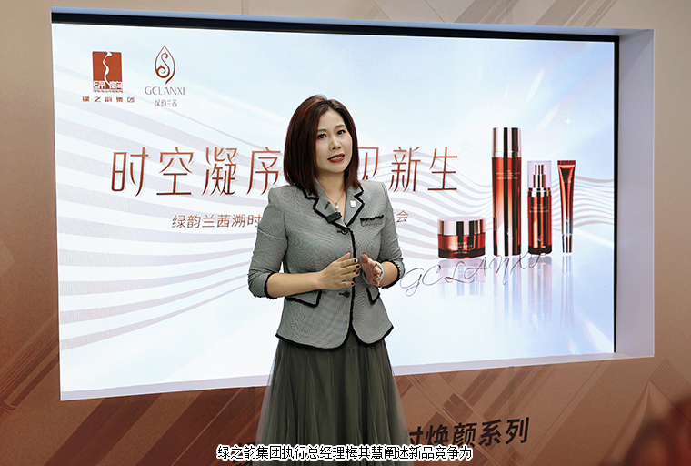 伴隨著綠韻蘭茜溯時(shí)煥顏新品宣傳片首度亮相,綠之韻集團(tuán)總裁勞嘉、市場(chǎng)營銷中心總經(jīng)理戴三省、執(zhí)行總經(jīng)理梅其慧、常務(wù)副總經(jīng)理蔣文、市場(chǎng)運(yùn)營中心國際商學(xué)院院長侯俊霞與劉天奇博士共同登臺(tái),在璀璨的光影中為新品完成揭幕儀式。