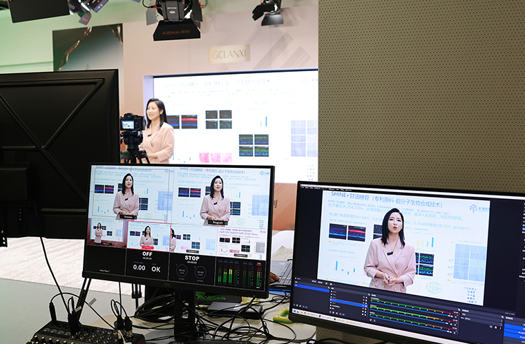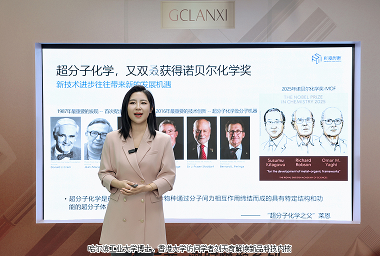 一段杉海技術(shù)短片緩緩揭開超分子技術(shù)的神秘面紗。哈爾濱工業(yè)大學(xué)博士、香港大學(xué)訪問學(xué)者劉天奇親臨直播間,以詳實(shí)的數(shù)據(jù)、生動(dòng)的原理解析,全面展現(xiàn)超分子技術(shù)在成分促滲、活性保護(hù)、膚感優(yōu)化及穩(wěn)定性提升四大維度的突破,清晰勾勒出這項(xiàng)技術(shù)如何打破傳統(tǒng)護(hù)膚局限,讓活性成分真正直達(dá)肌底。技術(shù)解讀過后,綠之韻集團(tuán)執(zhí)行總經(jīng)理梅其慧分享了超分子技術(shù)在產(chǎn)品市場(chǎng)上的競爭力,闡述品牌如何將科研成果落地為消費(fèi)者可感知的護(hù)膚價(jià)值。