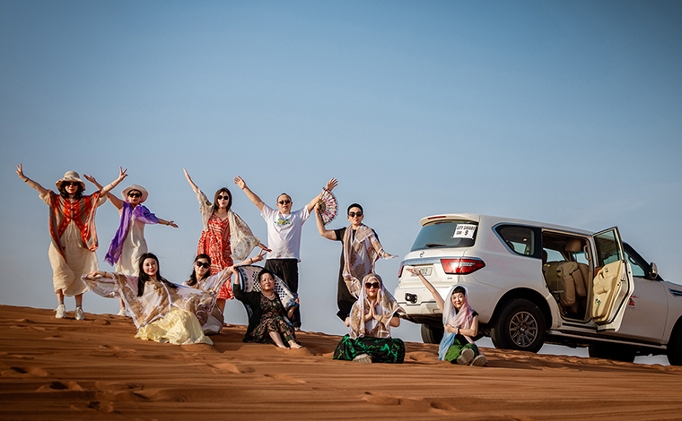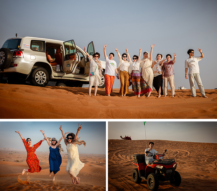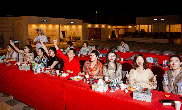 遠(yuǎn)離都市喧囂,駛?cè)虢鹕澈?。綠之韻家人們乘坐越野車馳騁于起伏沙丘,體驗(yàn)速度與激情的碰撞。夜幕降臨,獨(dú)具風(fēng)情的沙漠營地中,綠之韻特色晚宴璀璨開啟。阿拉伯音樂、肚皮舞韻、民族服飾、手繪藝術(shù)……在星空與篝火的映照下,成為一段難忘的沙漠記憶。