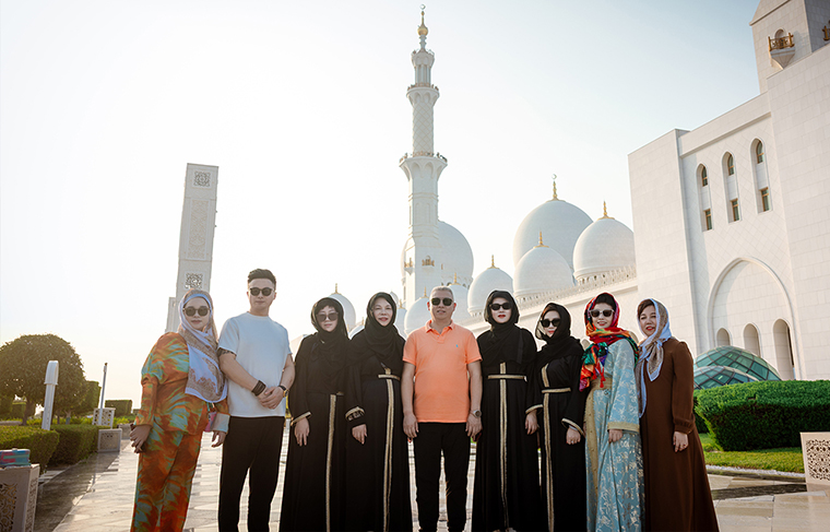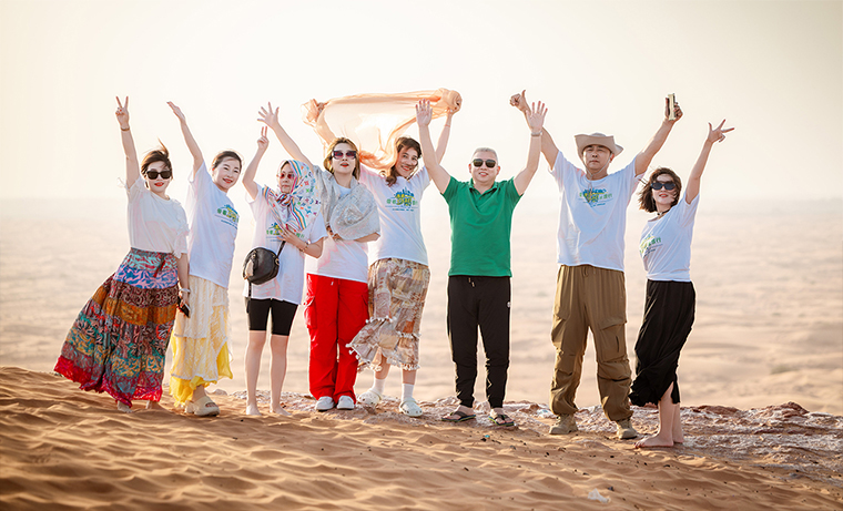 綠韻之旅,跨越山海。11月7日至12日,來自全國各地的綠之韻碧波庭家人們,在綠之韻集團(tuán)常務(wù)副總裁胡均安、綠之韻集團(tuán)市場(chǎng)管理中心市場(chǎng)總監(jiān)劉磊的帶領(lǐng)下,飛抵被譽(yù)為“海灣明珠”的迪拜,展開為期六天五晚的奢享旅程。旅游的首站來到世界之巔——哈利法塔。巍峨聳立于城市中心,這座高達(dá)828米的建筑奇跡,以其磅礴氣勢(shì)直擊心靈。乘梯凌空,俯瞰整座城市在腳下延展,綠之韻家人們無不感嘆人類智慧與自然的完美交融。