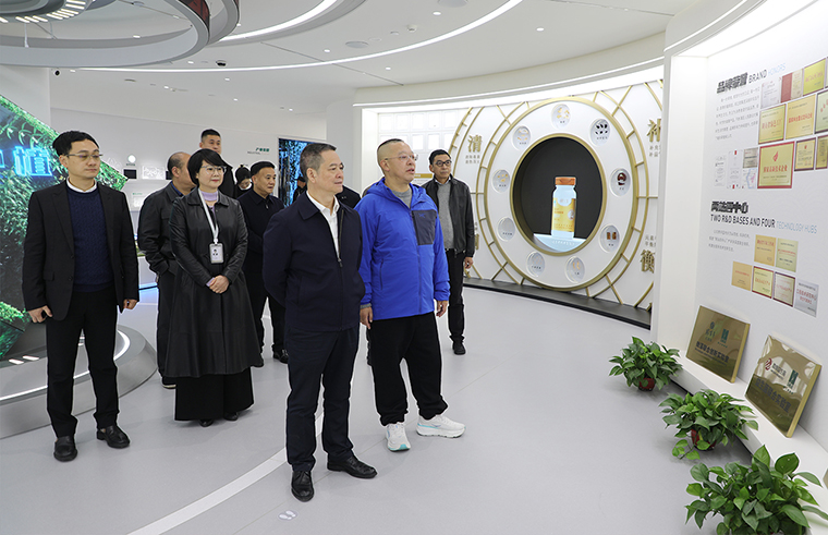 調(diào)研組先后參觀了綠之韻中心數(shù)智化科技展廳。展廳以“水之道”為企業(yè)文化內(nèi)核,融合東方哲學(xué)與數(shù)字技術(shù),通過(guò)數(shù)字化互動(dòng)技術(shù)和智慧展陳手段,立體呈現(xiàn)了綠之韻集團(tuán)的企業(yè)文化、發(fā)展歷程、黨建公益、產(chǎn)品理念、科研實(shí)力及戰(zhàn)略愿景。胡國(guó)安董事長(zhǎng)結(jié)合展示內(nèi)容向調(diào)研組介紹了企業(yè)在產(chǎn)品研發(fā)與產(chǎn)業(yè)拓展方面的創(chuàng)新實(shí)踐,展現(xiàn)了綠之韻在大健康領(lǐng)域的持續(xù)探索與成果。
