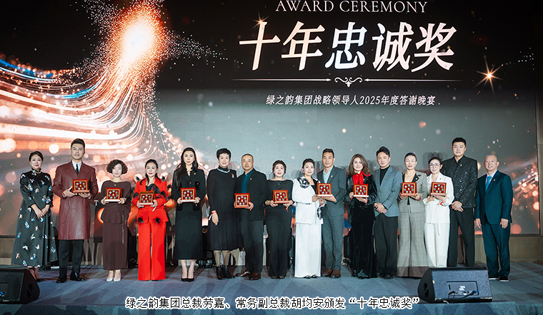宴會廳內(nèi),歌聲、笑聲、祝福聲交融回蕩;舉杯間,過往的拼搏、此刻的歡聚、明天的憧憬交織升騰。綠之韻人以此夜為記,不僅回望來路的堅實足跡,更展望前方的壯闊征程。