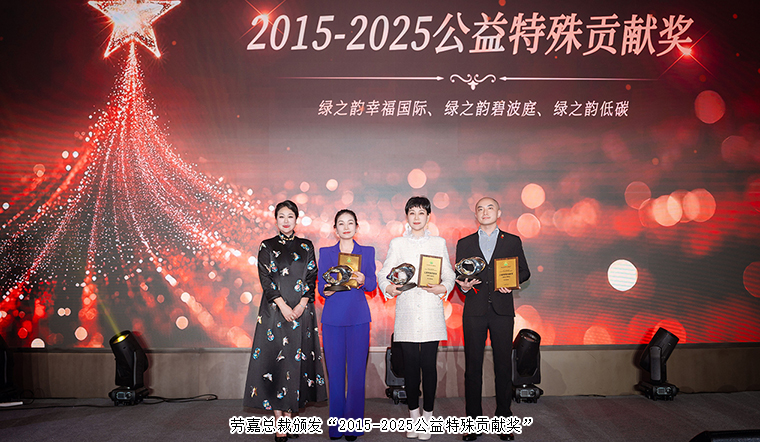 隨后,綠之韻集團總裁勞嘉為綠之韻幸福國際、綠之韻碧波庭、綠之韻低碳頒發(fā)“2015-2025公益特殊貢獻獎”。這份榮譽,不僅是對他們善行足跡的銘刻,更是對綠之韻十年如一日公益初心的見證。從鄉(xiāng)村振興到扶危濟困,從圓夢行動到書香助學(xué),他們的行動如細雨潤物,凝聚成一股溫暖而持久的力量。公益之路,從來不是獨行;這份榮譽,同樣屬于所有為愛奔赴的綠之韻人。