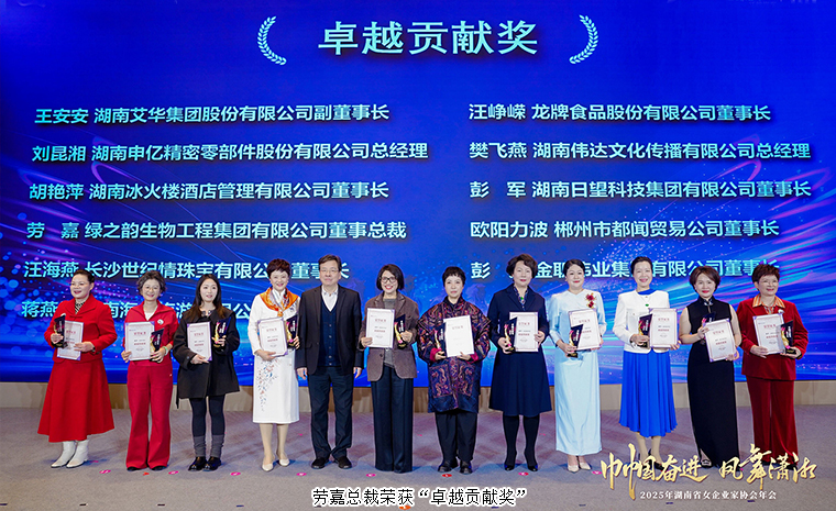 在熱烈的氛圍中,湖南省婦聯(lián)副主席楊成英登臺宣布《關(guān)于2025年度湖南省女企業(yè)家協(xié)會優(yōu)秀典型的通報(bào)》。過去一年,在協(xié)會組織開展的各項(xiàng)活動里,一大批女企業(yè)家勇立潮頭、實(shí)干擔(dān)當(dāng),以履職盡責(zé)的堅(jiān)守、無私奉獻(xiàn)的情懷,書寫了巾幗建功的動人篇章。綠之韻集團(tuán)總裁勞嘉憑借突出貢獻(xiàn)與榜樣力量,榮獲“卓越貢獻(xiàn)獎(jiǎng)”,熱烈持久的掌聲,是對她深耕實(shí)業(yè)、勇?lián)?zé)任的最好褒獎(jiǎng)。