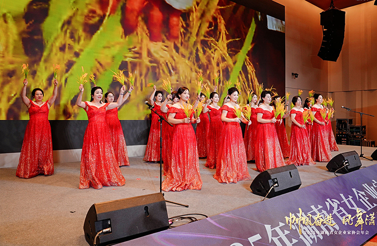 晚宴現(xiàn)場燈火璀璨,暖意融融,文藝表演的華彩篇章也隨之逐一鋪展。由各地市州女企協(xié)精心編排的節(jié)目輪番登場,湖南省女企業(yè)家協(xié)會會歌《花漾瀟湘》隨之重磅發(fā)布。舞蹈翩躚、歌聲嘹亮,一個(gè)個(gè)獨(dú)具匠心的表演如璀璨星辰點(diǎn)亮全場。這一夜,我們以歌舞抒懷,以歡笑結(jié)緣,不僅見證了瀟湘巾幗的多才多藝,更凝聚了攜手同行的深厚情誼。時(shí)光短暫,美好長存,愿這份并肩向前的力量永續(xù)傳遞,讓我們懷揣夢想再出發(fā),期待來年盛會重逢,共譜新篇。