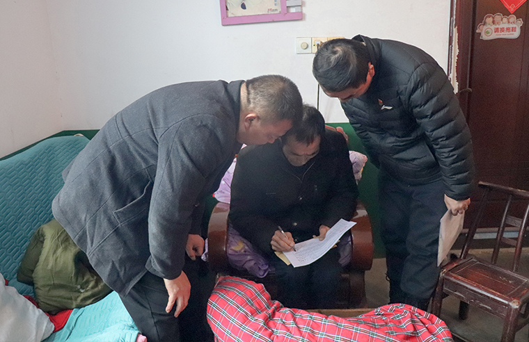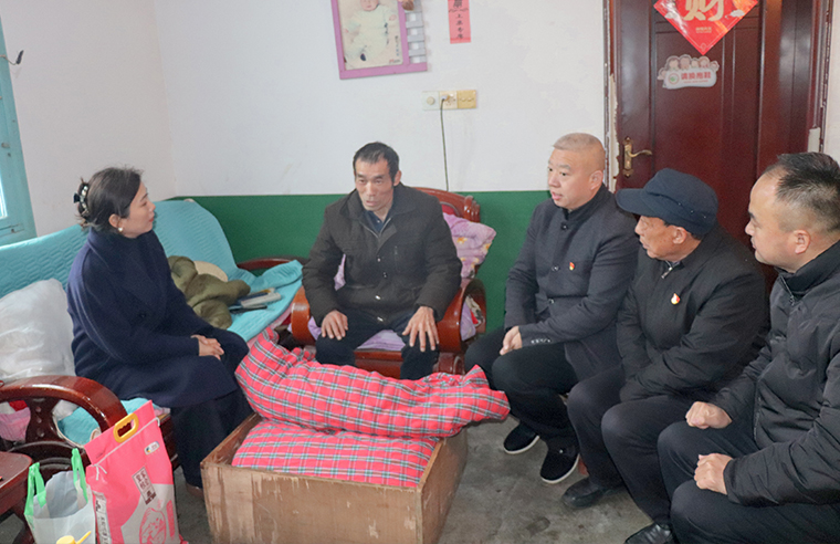在南園村,62歲的退役軍人陳友根身患多種重病,醫(yī)療開支讓整個(gè)八口之家步履維艱。大兒子一家打工維生,小兒子夫妻均為重度殘疾人,還有一個(gè)幼子需要照料。生活的重?fù)?dān)沒有壓垮這家人相互扶持的信念。蔣文秘書長與陳友根并肩而坐,詳細(xì)了解他身體醫(yī)療情況與家庭需求?!袄щy是暫時(shí)的,我們和您一起想辦法。”真誠的交流,如親人般的關(guān)懷,為他們注入了向前走的力量。