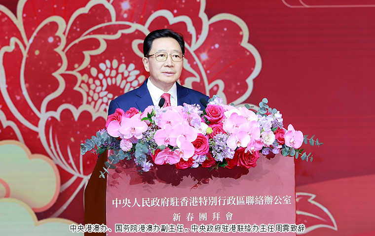 中央港澳辦、國務(wù)院港澳辦副主任,中央政府駐港聯(lián)絡(luò)辦主任周霽作了題為《同舟共濟(jì)譜華章 策馬揚鞭啟新程》的致辭。周霽表示,過去一年,在以習(xí)近平同志為核心的黨中央堅強領(lǐng)導(dǎo)下,國家各項事業(yè)取得新的歷史性成就?!笆奈濉眻A滿收官,我國經(jīng)濟(jì)總量突破140萬億元,經(jīng)濟(jì)實力、科技實力、國防實力、綜合國力躍上新臺階。中共二十屆四中全會擘畫高質(zhì)量發(fā)展新藍(lán)圖,中國式現(xiàn)代化的巨輪乘風(fēng)破浪、揚帆遠(yuǎn)航。習(xí)近平主席一直牽掛著香港發(fā)展和市民福祉,強調(diào)支持香港更好融入和服務(wù)國家發(fā)展大局,指引香港由治及興邁出新步伐。這一年,香港堅決維護(hù)國家主權(quán)、安全、發(fā)展利益,社會保持和諧穩(wěn)定,經(jīng)濟(jì)發(fā)展持續(xù)向好,民生不斷改善,一系列盛事、“峰會”成功舉辦,國際調(diào)解院在港揭牌運行,香港蟬聯(lián)全球最自由經(jīng)濟(jì)體,世界競爭力、金融中心指數(shù)、世界人才排名位列前茅,五所高校穩(wěn)居世界百強。東方之珠正煥發(fā)出更加璀璨奪目的光彩。他進(jìn)一步表示,新的一年,中央政府駐港聯(lián)絡(luò)辦將繼續(xù)全面準(zhǔn)確、堅定不移貫徹“一國兩制”方針,繼續(xù)全力支持李家超行政長官和特區(qū)政府依法施政,全力支持服務(wù)香港實現(xiàn)更好發(fā)展,為以中國式現(xiàn)代化推進(jìn)強國建設(shè)、民族復(fù)興偉業(yè)作出更大貢獻(xiàn)。