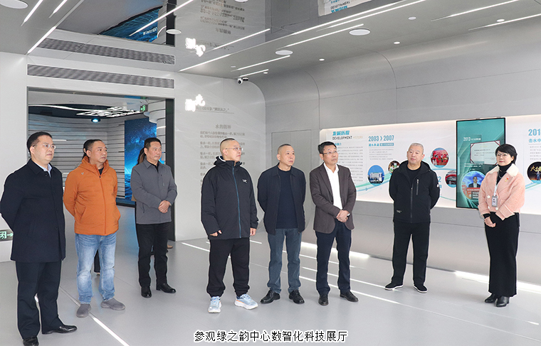 調(diào)研組一行先后參觀了綠之韻中心數(shù)智化科技展廳、黨建教育陣地及政協(xié)委員工作室。數(shù)智化科技展廳以“水之道”文化為核心設(shè)計理念,融合東方哲學(xué)智慧與西方先進(jìn)技術(shù),通過數(shù)字化互動系統(tǒng)全面展現(xiàn)了企業(yè)發(fā)展歷程、企業(yè)文化、全鏈條產(chǎn)品體系、核心科研突破及公益足跡。