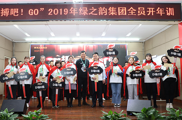 2019年2月12日—13日,綠之韻集團(tuán)胡國(guó)安董事長(zhǎng)、勞嘉總裁、高宇副董事長(zhǎng)攜集團(tuán)總部、各全國(guó)分公司以及各下屬企業(yè)、機(jī)構(gòu)共計(jì)400多名員工,熱情高漲地參加了以“拼博吧!GO”為主題的2019新春開(kāi)年訓(xùn)。