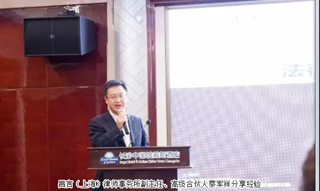 會上,省貿(mào)促會還與湖南昌言律師事務(wù)所簽訂了合作協(xié)議,雙方將通過“互聯(lián)網(wǎng)+商事法律服務(wù)”模式為我省中小企業(yè)服務(wù)開展合作。在商會大講堂環(huán)節(jié),昌言(上海)律師事務(wù)所副主任、高級合伙人蔡軍祥和交通銀行湖南省分行國際業(yè)務(wù)部總經(jīng)理何芳圍繞境外投資風(fēng)險和助力企業(yè)走出去為代表們作了精彩的演講。