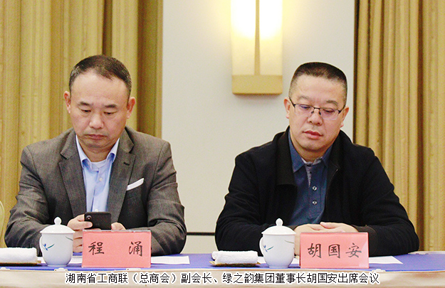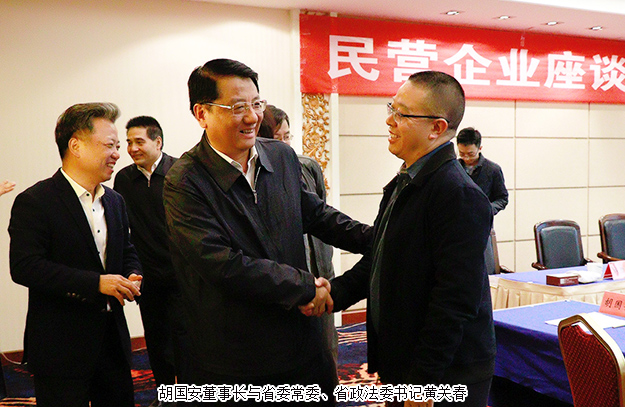 2018年12月4日,湖南省委統(tǒng)戰(zhàn)部、省委政法委組織召開民營企業(yè)座談會。湖南省委常委、省政法委書記黃關(guān)春,湖南省委常委、省委統(tǒng)戰(zhàn)部部長黃蘭香,湖南省政協(xié)副主席、省工商聯(lián)主席張健,湖南省高級人民法院黨組書記、院長田文立,湖南省人民檢察院黨組書記、檢察長游勸榮等領(lǐng)導(dǎo)出席座談會。第十二屆省政協(xié)委員、湖南省工商聯(lián)(總商會)副會長、綠之韻集團(tuán)董事長胡國安受邀參會。