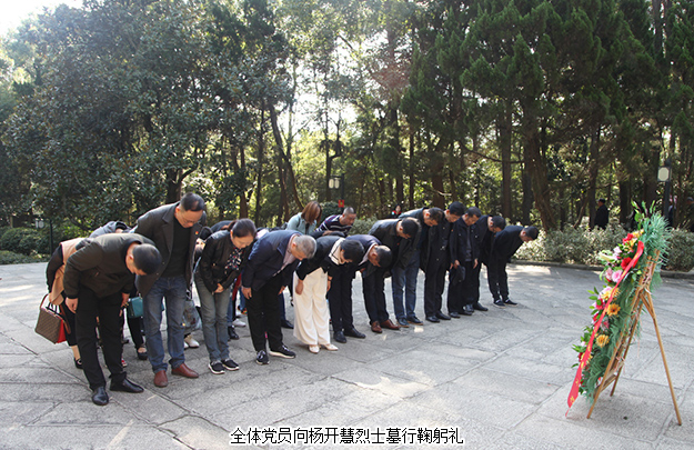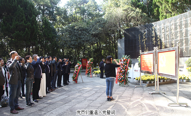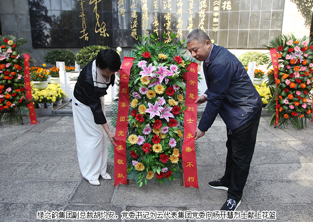 上午十時許,綠之韻集團的黨員們驅(qū)車抵達開慧鎮(zhèn)。黨員們首先來到了楊開慧烈士的陵園前進行悼念。陵園位于開慧紀念館右側(cè)的棉花坡上,三面環(huán)山,墓的兩側(cè),各豎有漢白玉碑一塊。陵墓前,黨員們神情肅穆,分列為三排,面向陵園鞠躬默哀。隨后,綠之韻集團副總裁胡均安,黨委書記劉云代表集團黨委向楊開慧烈士獻上花籃。