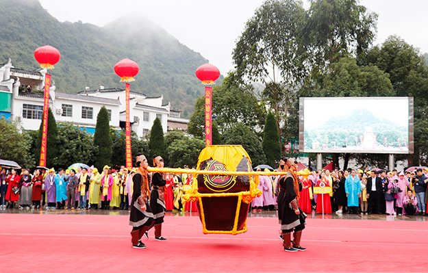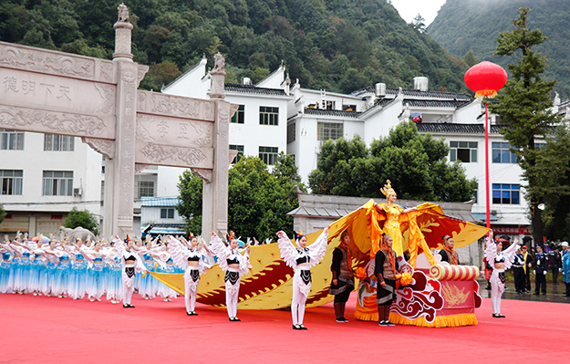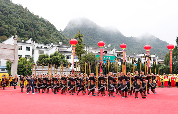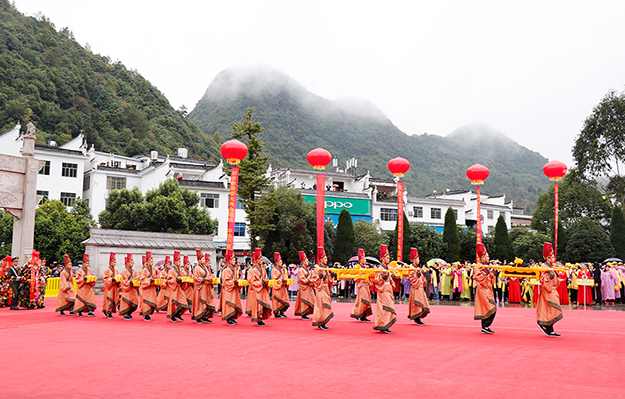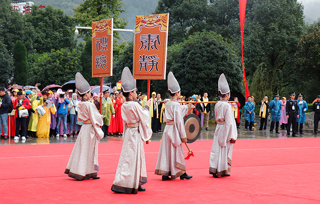 從2005年開(kāi)始第一屆,2009年、2012年和2015年先后四次舉行湖南省公祭舜帝大典。三年一祭,本屆公祭舜帝大典共分為三大儀程展示。龍獅歡騰,嗩吶高奏,瑤家阿哥阿妹,唱著迎客山歌,跳著瑤族長(zhǎng)鼓,敬獻(xiàn)瓜簞酒,百人腰鼓隊(duì)敲打著激越的鼓點(diǎn),迎接前來(lái)祭祀的賓客,儀式中無(wú)一不展現(xiàn)出寧遠(yuǎn)人熱情好客的民情風(fēng)俗。