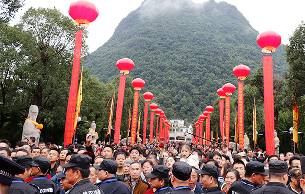 “九嶷山上白云飛,帝子乘風(fēng)下翠微。”2018年10月26日,戊戌年公祭舜帝大典于在湖南永州寧遠(yuǎn)縣九嶷山舜帝陵盛大開(kāi)啟,大典以“弘揚(yáng)中華優(yōu)秀傳統(tǒng)文化,建設(shè)富饒美麗幸福新湖南”為主題,旨在祭奠先祖神靈舜帝,為中華優(yōu)秀傳統(tǒng)文化的傳承蓄力。湖南省人民政府省長(zhǎng)許達(dá)哲進(jìn)行主祭,湖南省政協(xié)原主席、湖南省九嶷山舜帝陵基金會(huì)原理事長(zhǎng)王克英,省人大常委會(huì)黨組書(shū)記、副主任劉蓮玉,省人民政府副省長(zhǎng)吳桂英,省政協(xié)副主席賀安杰,省軍區(qū)副政治委員喻軍,省人大常委會(huì)原副主任、湖南省舜文化研究會(huì)榮譽(yù)會(huì)長(zhǎng)唐之享等領(lǐng)導(dǎo)和港、澳、臺(tái)及海外舜裔宗親代表以及對(duì)舜帝陵建設(shè)做出重大貢獻(xiàn)的知名人士、各界代表應(yīng)邀出席。《湖南日?qǐng)?bào)》、湖南衛(wèi)視、紅網(wǎng)、鳳凰網(wǎng)、騰訊大湘網(wǎng)、華聲在線、永州新聞網(wǎng)等多家媒體對(duì)本次公祭舜帝大典進(jìn)行現(xiàn)場(chǎng)報(bào)道。湖南省工商聯(lián)(總商會(huì))副會(huì)長(zhǎng)、綠之韻集團(tuán)董事長(zhǎng)胡國(guó)安受邀出席大典,與來(lái)自世界各地的華夏兒女集結(jié)福地寧遠(yuǎn),帶著一顆赤誠(chéng)之心,思追古舜,致祭舜帝重華。