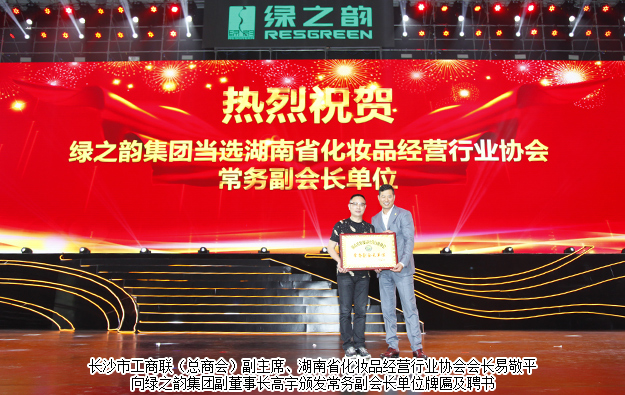 在此次大會(huì)上,湖南省化妝品經(jīng)營行業(yè)協(xié)會(huì)授予綠之韻集團(tuán)為其常務(wù)副會(huì)長單位。同時(shí)綠之韻集團(tuán)副董事長高宇先生,也將當(dāng)選為協(xié)會(huì)專職副會(huì)長。