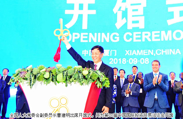 開幕式上,全國人大常委會副委員長曹建民宣讀了主席賀信。主席在賀信中說道,20多年來,中國國際投資貿(mào)易洽談會致力于打造雙向投資促進(jìn)、權(quán)威信息發(fā)布和投資趨勢研討三大平臺,已發(fā)展成全球最具影響力的國際投資盛會之一,為我國改革開放和社會主義現(xiàn)代化建設(shè)作出了積極貢獻(xiàn)。他強(qiáng)調(diào),今年是改革開放40周年。中國對外開放的大門只會越開越大,希望投洽會以雙向投資促進(jìn)為主題,精耕細(xì)作,打造國際化、專業(yè)化、品牌化的精品,辦成新一輪高水平對外開放的重要平臺,為推動形成全面開放新格局、建設(shè)開放型世界經(jīng)濟(jì)發(fā)揮積極作用。