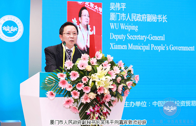 論壇開幕式上,廈門市人民政府副秘書長吳偉平向嘉賓致歡迎辭,首先,他代表廈門歡迎各位嘉賓的到來,并在致辭中提到中醫(yī)藥是我國獨特的衛(wèi)生資源,是我國大健康產(chǎn)業(yè)的重要支柱。他強(qiáng)調(diào),廈門市委市政府高度重視中醫(yī)藥事業(yè)發(fā)展,積極創(chuàng)造良好的營商環(huán)境,隨著國家“一帶一路”建設(shè)的深入推進(jìn),中醫(yī)藥發(fā)展也將迎來黃金時代。