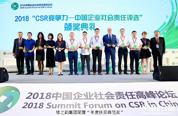本次論壇通過對參選企業(yè)的調(diào)研和對上榜企業(yè)的案例研究,深入剖析和總結(jié)中國企業(yè)在社會責(zé)任公益行動的成果和經(jīng)驗,樹立參選社會責(zé)任企業(yè)及領(lǐng)導(dǎo)人的典范形象,給予行業(yè)一定的借鑒意義。論壇頒獎典禮上,集中頒發(fā)了可持續(xù)發(fā)展示范企業(yè)獎、扶貧典范獎、社會關(guān)懷典范企業(yè)獎等年度獎項,綠之韻集團(tuán)榮獲“年度扶貧典范獎”殊榮。