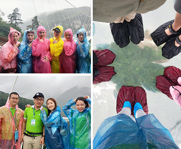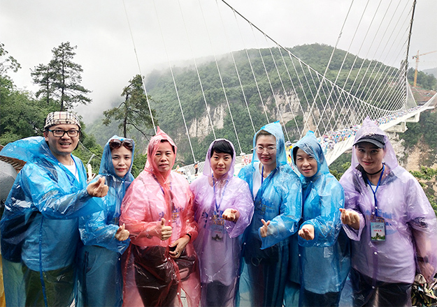 集山、水、洞、峽、橋、瀑于一身的張家界大峽谷,綠之韻營銷精英們在這里挑戰(zhàn)世界最高最長首座斜拉式高山峽谷玻璃橋——“云天渡”,細(xì)雨蒙蒙,漫步天上人間,別有一番滋味,帶著一顆感恩的心,從這頭走到那頭、走過青絲到白發(fā),感受橋的刺激、湖的清澈、山的倒蘸、水的秀麗、情的溫柔,真正做到超脫塵世、忘卻人間。